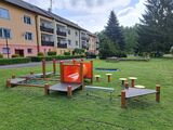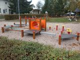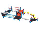 The support structure of the steps is made of structural steel which is protected against corrosion by zinc coating, resulting in a very prolonged service life of the workout elements or duplex powder coated with coat curing according to RAL to prevent corrosion. These structures are embedded in a concrete base. All other metallic elements are also zinc coated or duplex powder coated with coat curing according to RAL to prevent corrosion. Ropes and nets are made of HERKULES (16 mm polypropylene ropes with inner steel core) and are connected by plastic connectors. The crawler tunnel is made of fibreglass with high UV stability and high colour stability. All step boards are made of high quality HDPE (high-pressure, full-coloured polyethylene, which is characterised by high colour stability, UV resistance and mainly safety because it is rigid and there is no risk of injury caused by sharp broken fragments). The platforms are made from HPL (High-pressure laminate, which is characterised by high colour stability and water resistance). All connecting material is zinc or stainless steel coated.
