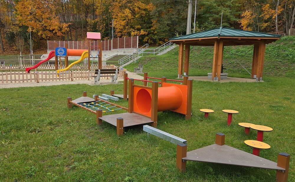 Skill path SD101K - there is no need for a fall zone up to the height of 1 m, a grass surface is enough. We offer three color variants of the support structure - silver, blue and brown. More information