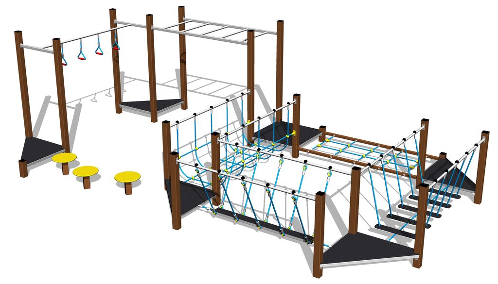 Skill path - there is no need for a fall zone up to the height of 1 m, a grass surface is enough. We offer two color variants of the support structure - brown and silver. More information