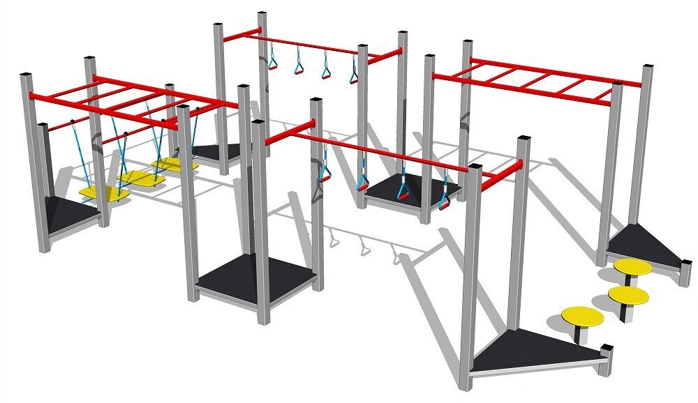 Rope bridge - metal (f.h. 1 m) - there is no need for a fall zone up to the height of 1 m, a grass surface is enough. We offer two color variants of the support structure - brown and silver.