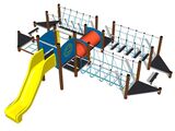 The slide is made from fibreglass. The surface of the slide is made from high quality HDPE plastic (high density coloured polyethylene, which is characterised by high colour stability, UV resistance but mainly safety as it doesn't break and therefore there is no danger of injury to children by sharp fragments). Ropes and nets are made of HERKULES (16 mm polypropylene ropes with inner steel core) and are connected by plastic connectors. The crawler tunnel is made of polyethylene with high UV stability and high colour stability. The platforms are made from HPL (High-pressure laminate, which is characterised by high colour stability and water resistance). All connecting material is zinc or stainless steel coated.