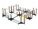 The support structure of the skill path is made from structural steel, it is zinc coated or duplex powder coated with coat curing according to RAL to prevent corrosion. The structure is fixed in a concrete bed. All other metal units are zinc coated or duplex powder coated with coat curing according to RAL to prevent corrosion. The ropes and nets are made using HERKULES material (16 mm thick ropes made from polypropylene with a steel internal core). The platforms are made from HPL (High-pressure laminate, which is characterised by high colour stability and water resistance). Steps boards are made of HPL (High-pressure laminate, which is characterised by high colour stability and water resistance). All fastening material is galvanized or stainless steel.