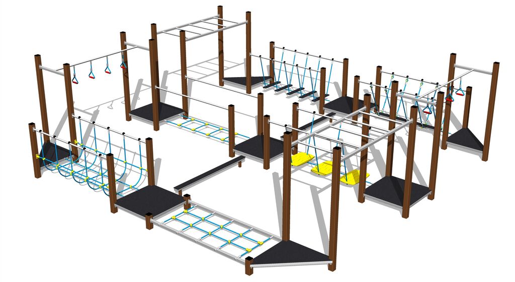 Skill path - there is no need for a fall zone up to the height of 1 m, a grass surface is enough. We offer two color variants of the support structure - brown and silver.