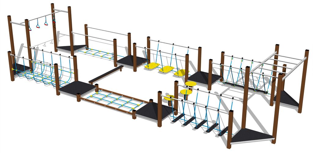 Skill path - there is no need for a fall zone up to the height of 1 m, a grass surface is enough. We offer two color variants of the support structure - brown and silver. More information