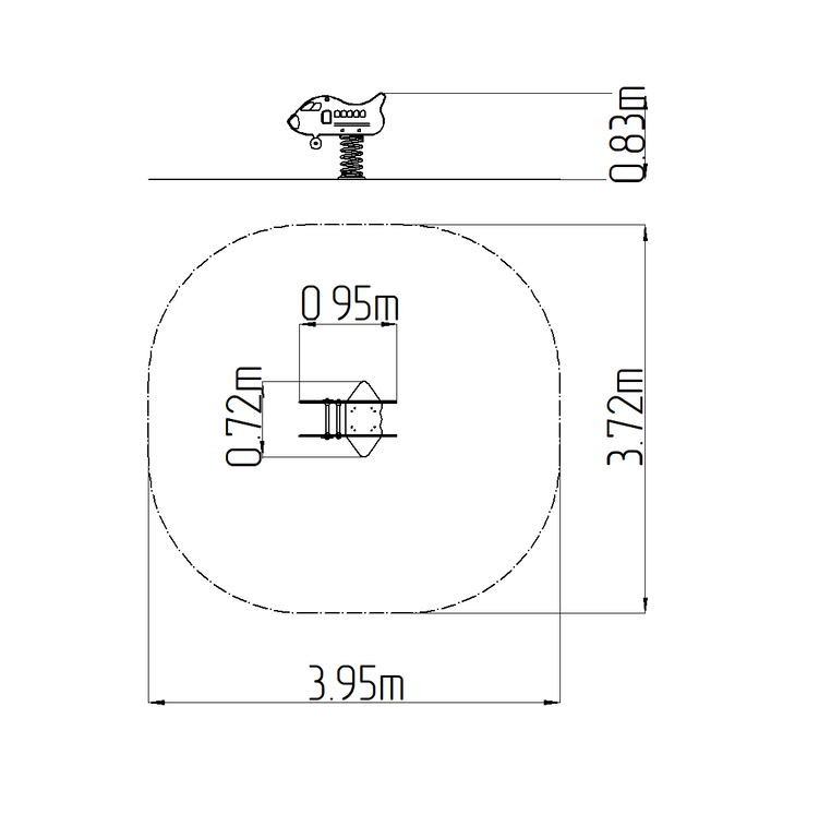 Spring rocker - AIRLINER. There is no need for a fall zone up to the height of 1 m, a grass surface is enough. More information