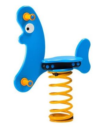 The body of the rocker and the seat are made from high quality HDPE plastic (high density coloured polyethylene, which is characterised by high colour stability, UV resistance but mainly safety as it doesn't break and therefore there is no danger of injury to children by sharp fragments). The swing spring is made from special spring steel and duplex powder coated with coat curing according to RAL to prevent corrosion. All fastening material is stainless steel.