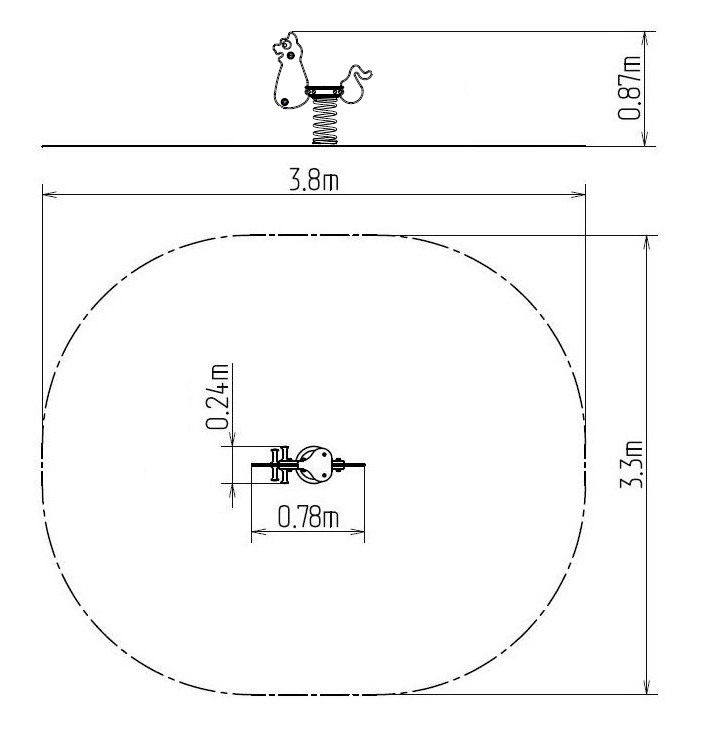 Spring rocker - CAT. There is no need for a fall zone up to the height of 1 m, a grass surface is enough. More information
