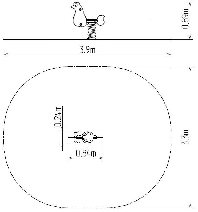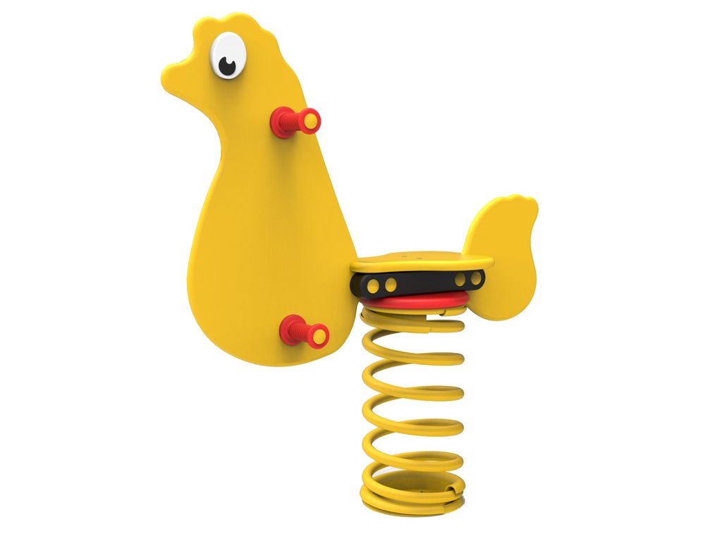 Spring rocker - CHICKEN. There is no need for a fall zone up to the height of 1 m, a grass surface is enough. More information