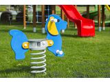 Spring rocker - DOG. There is no need for a fall zone up to the height of 1 m, a grass surface is enough. More information