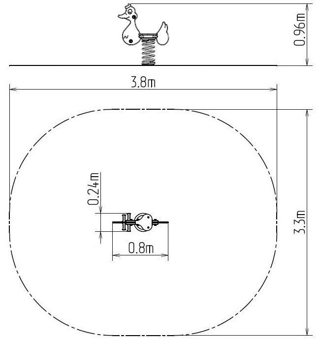 Spring rocker - DUCK. There is no need for a fall zone up to the height of 1 m, a grass surface is enough. More information