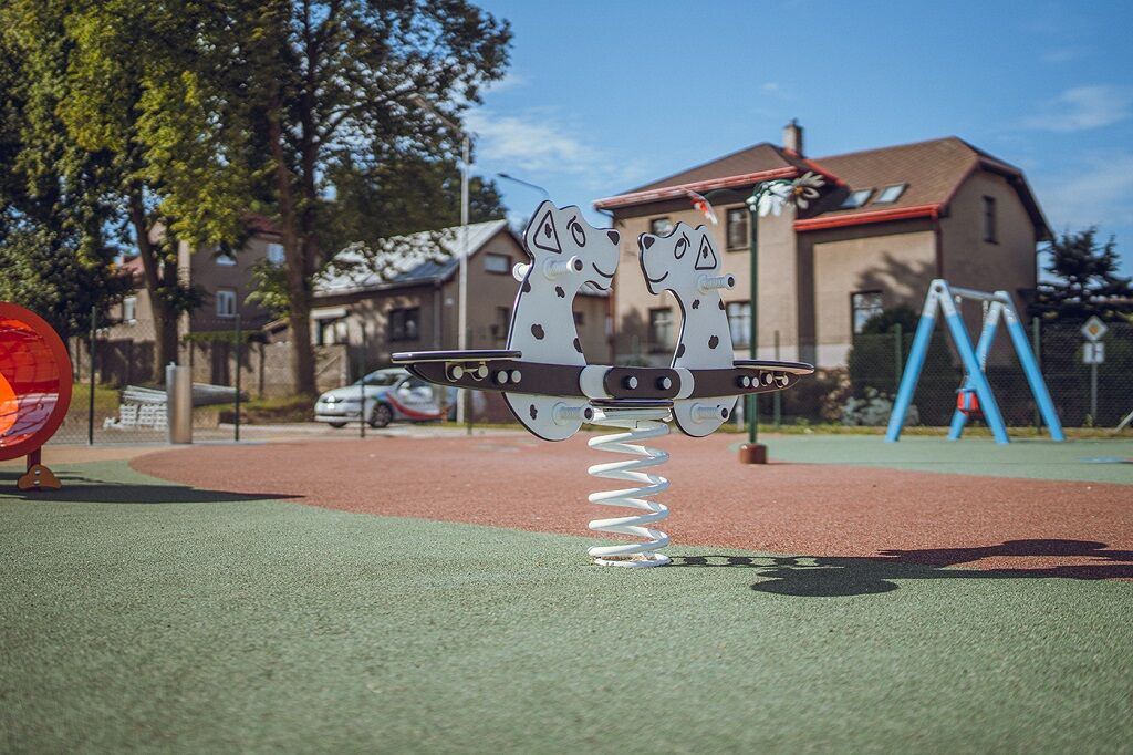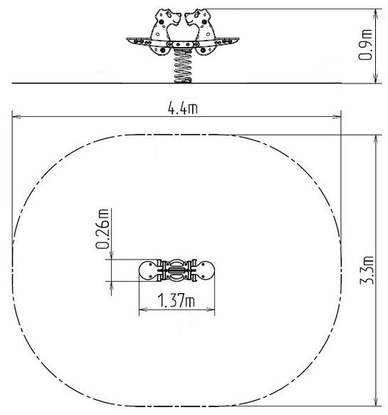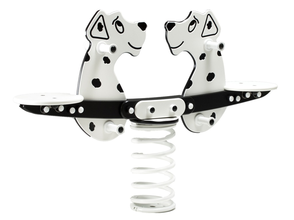 Spring rocker - DUO DALMATIAN. There is no need for a fall zone up to the height of 1 m, a grass surface is enough. More information