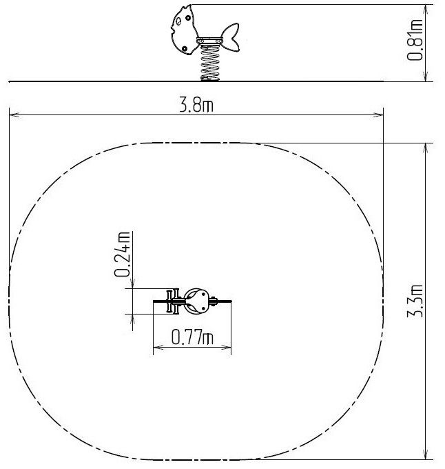 Spring rocker - FISH. There is no need for a fall zone up to the height of 1 m, a grass surface is enough. More information