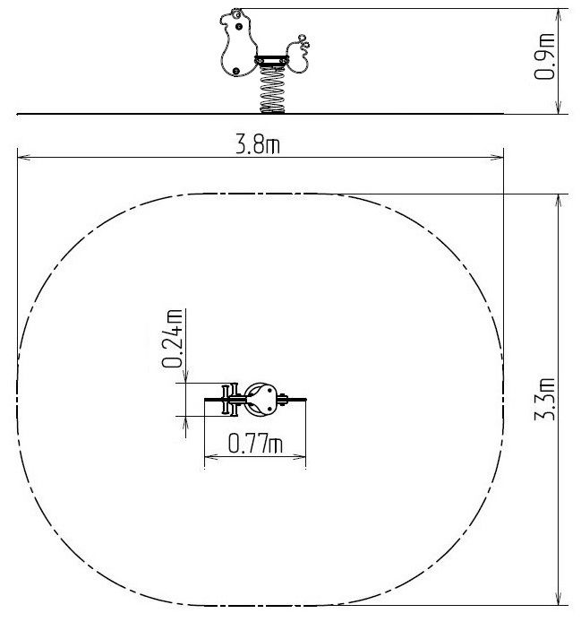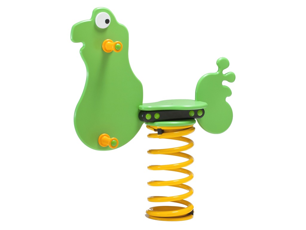 Spring rocker - FROG. There is no need for a fall zone up to the height of 1 m, a grass surface is enough. More information