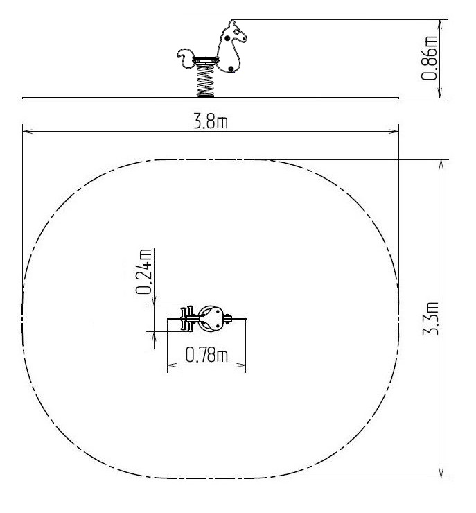 Spring rocker - HORSE. There is no need for a fall zone up to the height of 1 m, a grass surface is enough. More information