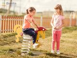 The body of the rocker and the seat are made from high quality HDPE plastic (high density coloured polyethylene, which is characterised by high colour stability, UV resistance but mainly safety as it doesn't break and therefore there is no danger of injury to children by sharp fragments). The swing spring is made from special spring steel and duplex powder coated with coat curing according to RAL to prevent corrosion. All fastening material is stainless steel.