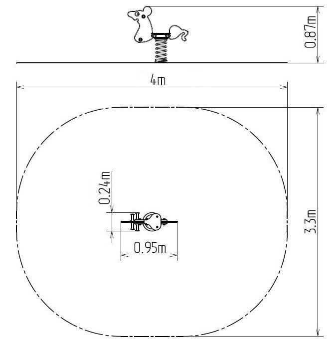 The size of the safety rubber surface under the spring rockers is 1 x 1 m.