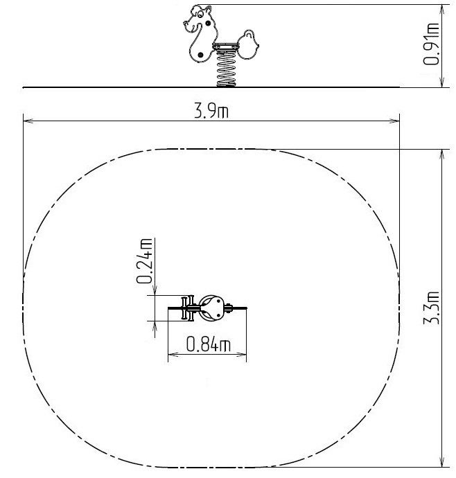 Spring rocker - PONY. There is no need for a fall zone up to the height of 1 m, a grass surface is enough. More information