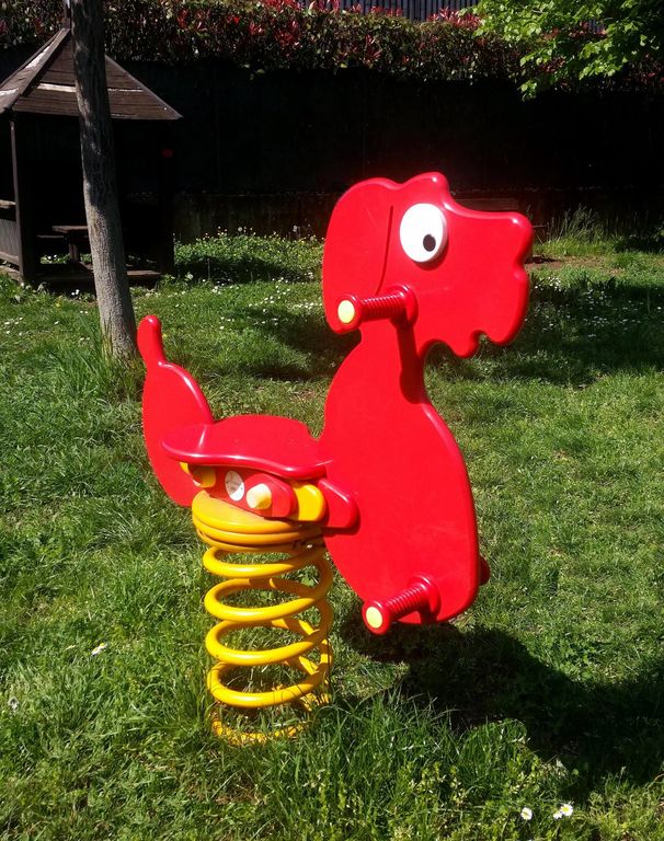 The size of the safety rubber surface under the spring rockers is 1 x 1 m.