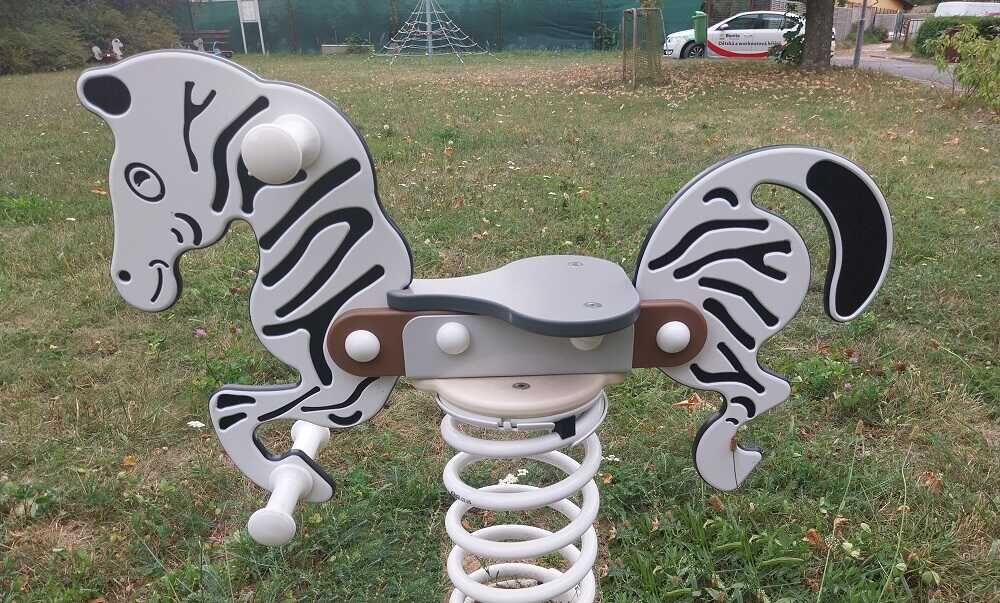 Spring rocker - ZEBRA. There is no need for a fall zone up to the height of 1 m, a grass surface is enough. More information