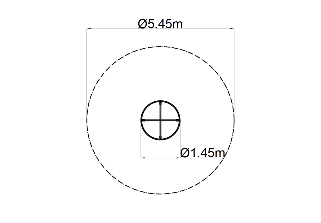 The merry-go-round is welded from steel pipes and square profiles. All metal units are protected against corrosion by zinc coating, resulting in a very prolonged service life of the workout elements or duplex powder coated with coat curing according to RAL to prevent corrosion. The structures are fixed in a concrete bed. The roundabout is constructed with durability and long life in mind. The platform is made from a non-slip sheet metal. All fastening material is galvanized or stainless steel.