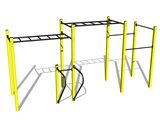 Street workout set WS8015K - there is no need for a fall zone up to the height of 1 m, a grass surface is enough. We offer six color variants of the support structure - red, blue, yellow, green, grey and orange. Handles are black or we offer the option of stainless steel for extra charge - price on request. More information