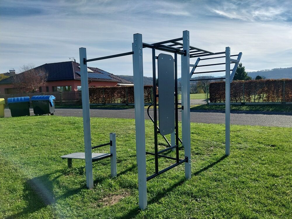 The support structure of the workout set is made of structural steel which is protected against corrosion by zinc coating, resulting in a very prolonged service life of the workout elements or duplex powder coated with coat curing according to RAL to prevent corrosion. All other metallic elements, such as handles, parallel bars etc., are also zinc coated or duplex powder coated with coat curing according to RAL to prevent corrosion or, if required by the customer, the elements can be made in stainless steel.