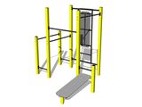 The support structure of the workout set is made of structural steel which is protected against corrosion by zinc coating, resulting in a very prolonged service life of the workout elements or duplex powder coated with coat curing according to RAL to prevent corrosion. All other metallic elements, such as handles, parallel bars etc., are also zinc coated or duplex powder coated with coat curing according to RAL to prevent corrosion or, if required by the customer, the elements can be made in stainless steel.
