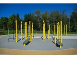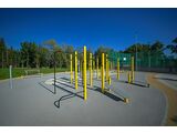 Street workout set WS8023K - there is no need for a fall zone up to the height of 1 m, a grass surface is enough. We offer six color variants of the support structure - red, blue, yellow, green, grey and orange. Handles are black or we offer the option of stainless steel for extra charge - price on request. More information