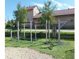 Street workout set WS8025K - there is no need for a fall zone up to the height of 1 m, a grass surface is enough. We offer six color variants of the support structure - red, blue, yellow, green, grey and orange. Handles are black or we offer the option of stainless steel for extra charge - price on request. More information