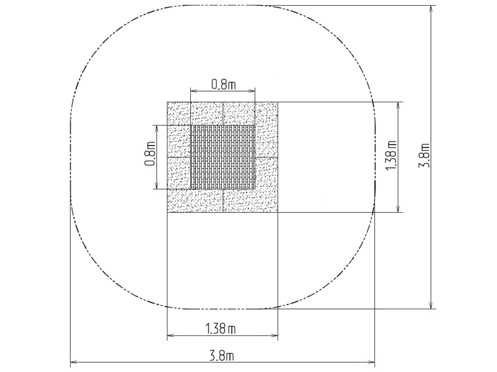 Jumping area - consists of a large number of lamellas designed for this purpose, connected with the frame by stainless steel cables. Cable ends are connected to the frame through springs. Lamellas are of special plastic that is abrasion proof and weather resistant. Thanks to that, children can leave their shoes on when using the trampoline. The jumping area is provided with the anti-slippery surface as well.