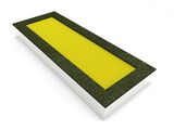 Jumping area - consists of a large number of lamellas designed for this purpose, connected with the frame by stainless steel cables. Cable ends are connected to the frame through springs. Lamellas are of special plastic that is abrasion proof and weather resistant. Thanks to that, children can leave their shoes on when using the trampoline. The jumping area is provided with the anti-slippery surface as well.