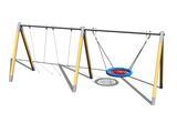 The swings are hung on a metal girder using galvanized chains. The "Bird's Nest" seat is made from polypropylene rope with heavy duty fibres. The hanging ropes are made using HERKULES material (16 mm thick ropes made from polypropylene with a steel internal core). All fastening material is galvanized or stainless steel.No comments or questions Triple chain swing RH320D (f.h. 1,5 m) regarding this product. Do not hesitate to ask.