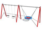 The support structure of the swing is made from structural steel, which is zinc coated or duplex powder coated with coat curing according to RAL to prevent corrosion and is fixed in a concrete bed.