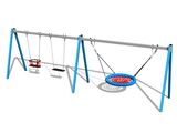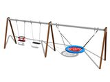 The swing is hung on a metal girder using galvanized chains. The "Bird's Nest" seat is made from polypropylene rope with heavy duty fibres. The hanging ropes are made using HERKULES material (16 mm thick ropes made from polypropylene with a steel internal core). The Normal seat is made of aluminum, covered with a soft and comfortable rubber. The Baby seat baby is made of rubber and is reinforced with an aluminum insert. All fastening material is galvanized or stainless steel.