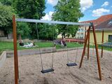 The support structure of the swing is made from structural steel, which is zinc coated or duplex powder coated with coat curing according to RAL to prevent corrosion and is fixed in a concrete bed. The Normal seat is made of aluminum, covered with a soft and comfortable rubber. The chains are stainless steel, resulting in a very prolonged service life of the product. All fastening material is galvanized or stainless steel.