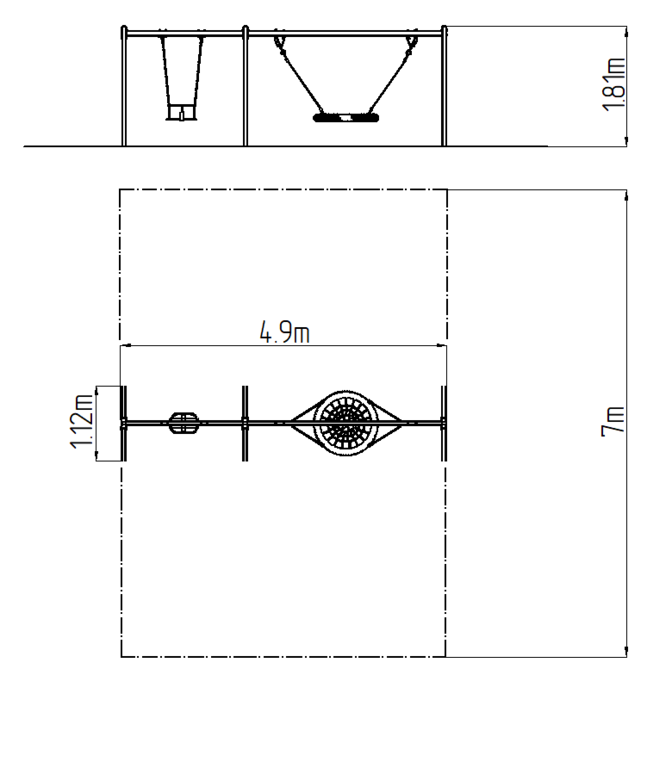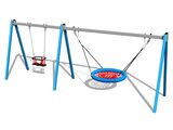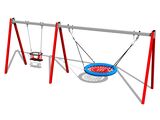 The swing is hung on a metal girder using galvanized chains. The "Bird's Nest" seat is made from polypropylene rope with heavy duty fibres. The hanging ropes are made using HERKULES material (16 mm thick ropes made from polypropylene with a steel internal core). The Baby seat baby is made of rubber and is reinforced with an aluminum insert. All fastening material is galvanized or stainless steel.