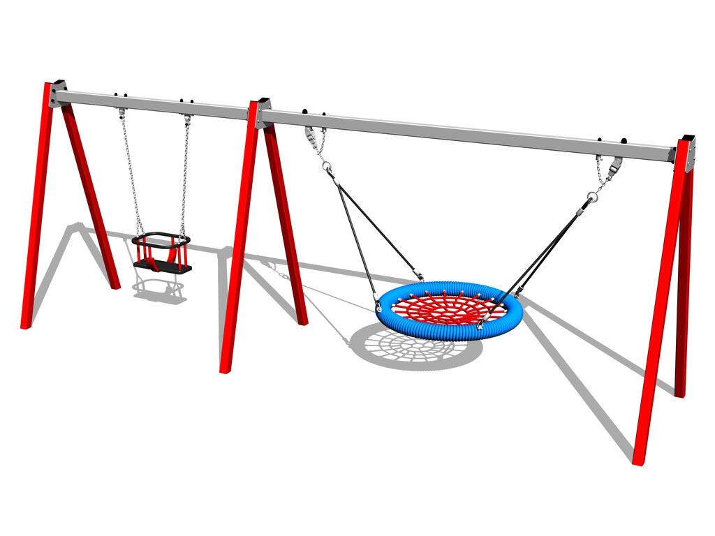 Twin chain swing RH6222K - metal (f.h. 1 m) - there is no need for a fall zone up to the height of 1 m, a grass surface is enough. We offer three color variants of the support structure - red, blue and brown. More information