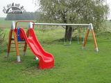 Seats and hinges are not part of the swing. It is necessary to buy a seat (2 pieces) of your choice and curtains (4 pieces). Twin chain swing with a slide RH250D (f.h. 1 m) - there is no need for a fall zone up to the height of 1 m, a grass surface is enough. More information