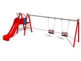 Twin chain swing with a slide RH6253K - metal (f.h. 1 m) - there is no need for a fall zone up to the height of 1 m, a grass surface is enough. We offer three color variants of the support structure - red, blue and brown. More information