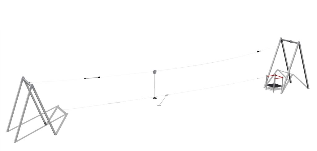 Twin post cableway LD021K - there is no need for a fall zone up to the height of 1 m, a grass surface is enough. More information