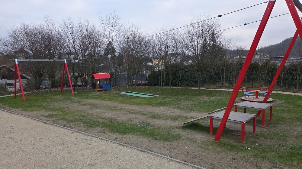 Twin post cableway with a ramps LD031K - there is no need for a fall zone up to the height of 1 m, a grass surface is enough. More information