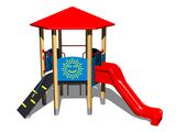 Tower, roof, slide, sloping ramp with the rope and HDPE steps, 3x barrier from HDPE, ladder. More information