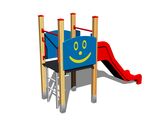 The tower unit support structure is made from thick glued wooden supports. This solution ensures maximum protection against cracking, which is common for products made from solid wood. The wooden supports are impregnated and coated with a triple layer of lacquer, which meets the terms and conditions of the EN71/3 Standard (safe for children's toys). The structures are anchored into the ground in steel plates, which are protected against corrosion by hot-dip galvanizing and fixed in a concrete bed. The anchors are fastened to the play unit with bolts and their structure ensures that they are not in direct contact with the ground. All other metallic elements are also zinc coated or duplex powder coated with coat curing according to RAL to prevent corrosion.
