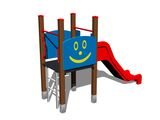 The slide is made from fibreglass. The surface of the slide is made from high quality HDPE plastic (high density coloured polyethylene, which is characterised by high colour stability, UV resistance but mainly safety as it doesn't break and therefore there is no danger of injury to children by sharp fragments). The platform is made from HPL (High-pressure laminate, which is characterised by high colour stability and water resistance). All fastening material is galvanized or stainless steel.
