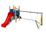 Tower, slide, 2x barrier, sloping ramp with the rope and HDPE steps, chain swing. More information