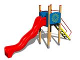 Tower, slide, 2x barrier, sloping ramp with steps and metal handles. More information