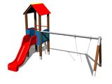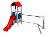 Seats and hinges are not part of the swing. It is necessary to buy a seat (1 pieces) of your choice and curtains (2 pieces). Tower, slide, A-shaped roof, 2x barrier, ladder, metal beam. More information