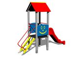 Tower, slide, A-shaped roof, 2x barrier, sloping ramp with steps and metal handles. More information