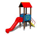 The slide is made from fibreglass. The surfaces of the slides, steps, etc. are made from high quality HDPE plastic (high density coloured polyethylene, which is characterised by high colour stability, UV resistance but mainly safety as it doesn't break and therefore there is no danger of injury to children by sharp fragments). The platform is made from HPL (High-pressure laminate, which is characterised by high colour stability and water resistance). The roof is made from HPL (High-pressure laminate, which is characterised by high colour stability, UV resistance and water resistance). All fastening material is galvanized or stainless steel.