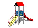 Tower, slide, A-shaped roof, 2x barrier, sloping ramp with steps and metal handles. More information